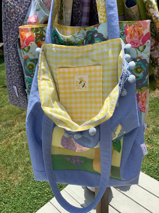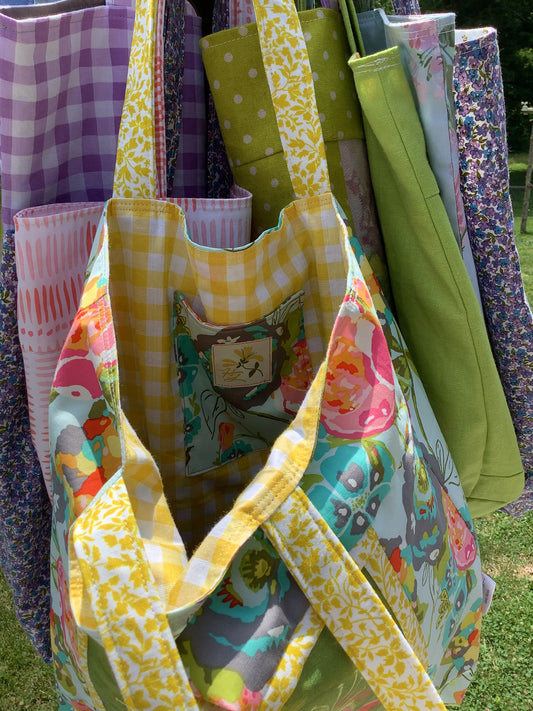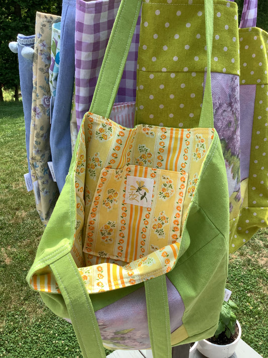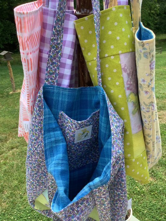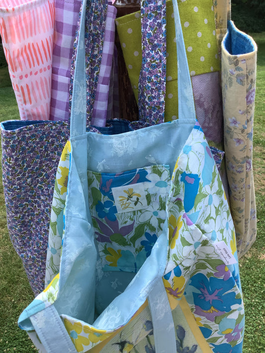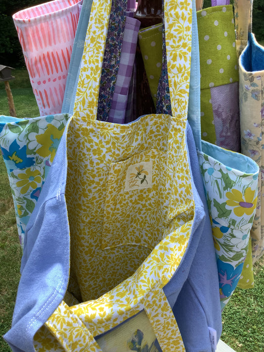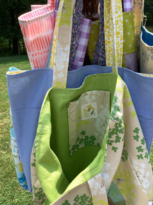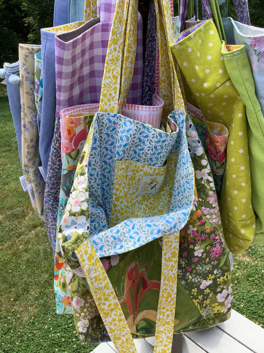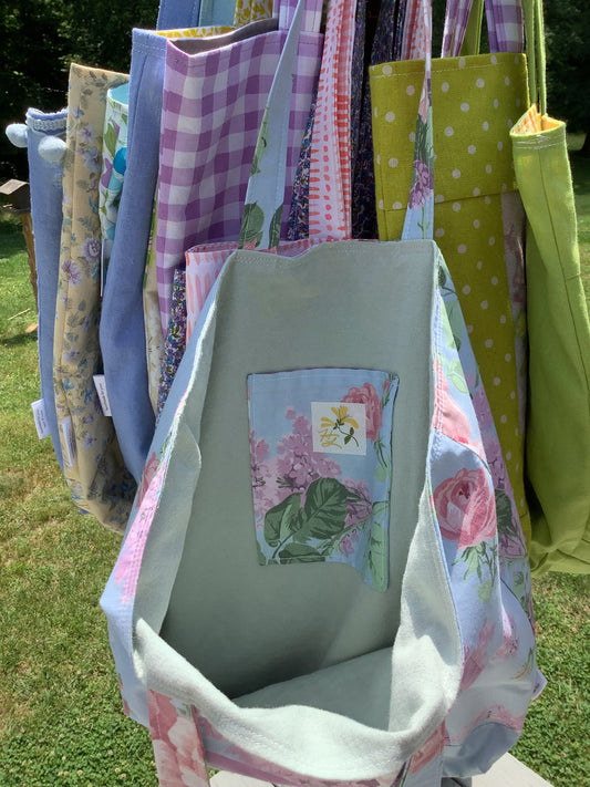 I have a confession... I LOVE fabric, especially vintage fabric! Although some favorite pieces will remain in my personal collection for home use, I have begun making items for your everyday needs. Utilitarian items can be pretty! Don't you think so? These goods include market tote bags, library bags, needlework bags, teacher’s bags, zippered pouches, key fobs, etc.
