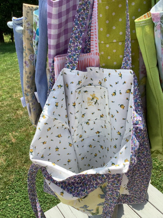 Lavender & Bees Ditsy Floral Market Tote Bag