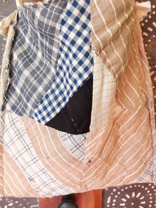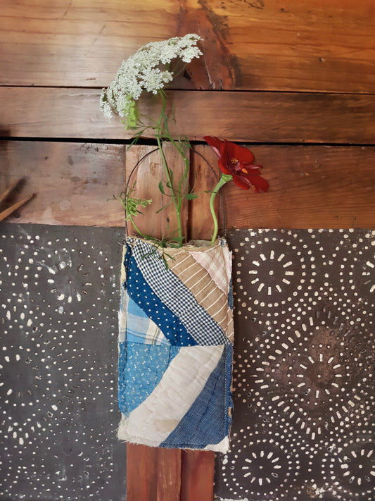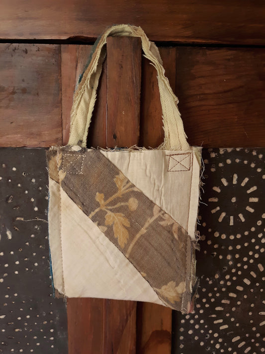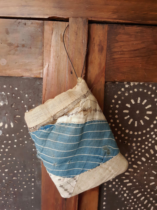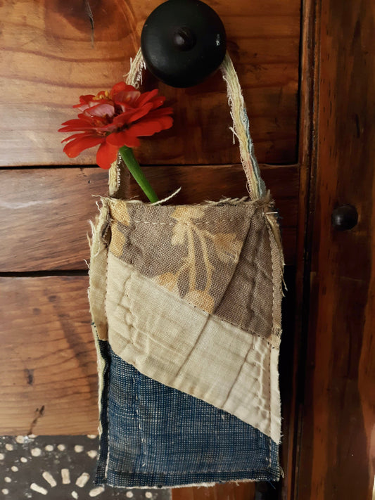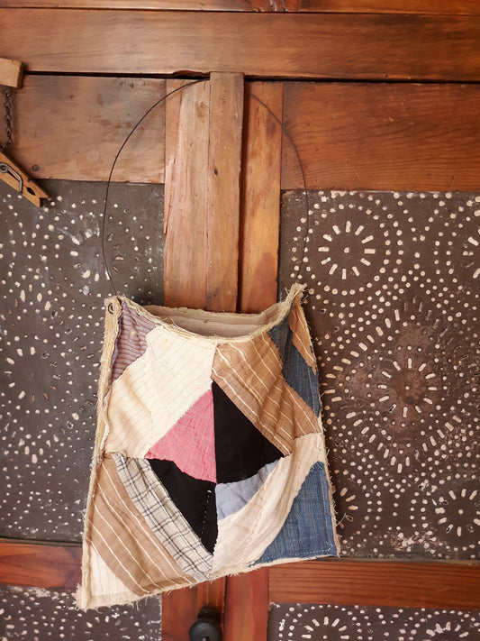 Antique Quilt Ditty Bag with Cloth Handle, Large