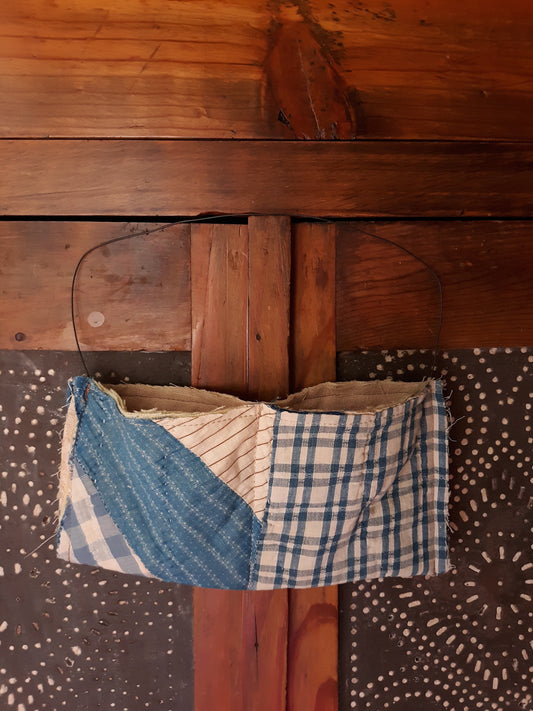 Antique Quilt Ditty Bag with Fancy Wire Handle