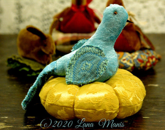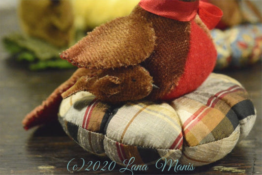 Mohair Bird on Plaid Silk Dupioni Cushion