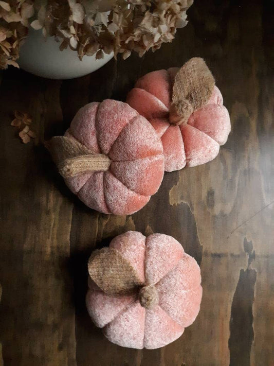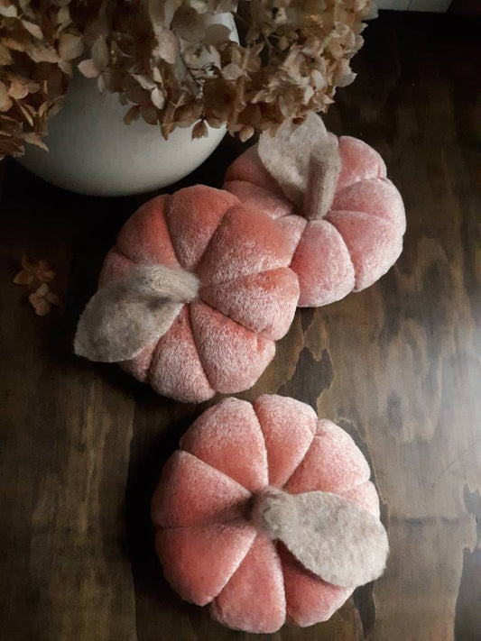 Salmon Pink with Light Stem Vintage Velvet Pumpkin