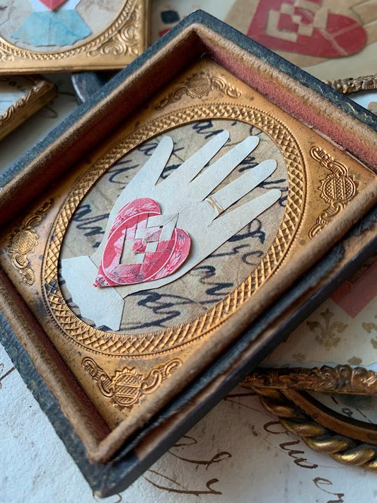 Heart in Hand Papercutting / Vintage Gilt Frame