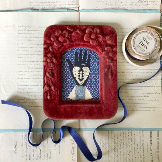 Heart in Hand Papercutting / Embossed Velvet Frame
