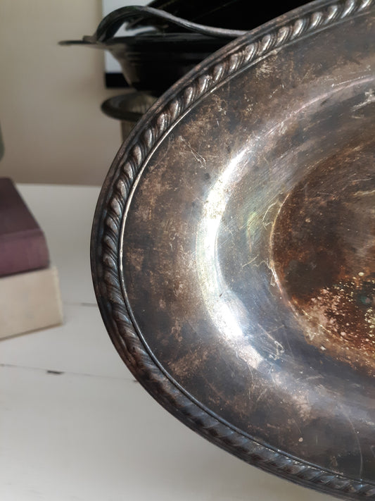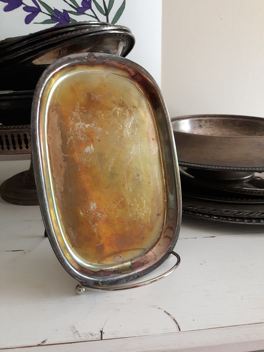 Vintage Silver Plated Oval Tray / Patina