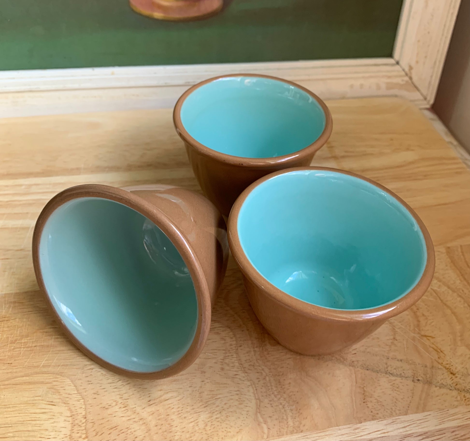 Sweet brown and robin’s egg blue bowls.